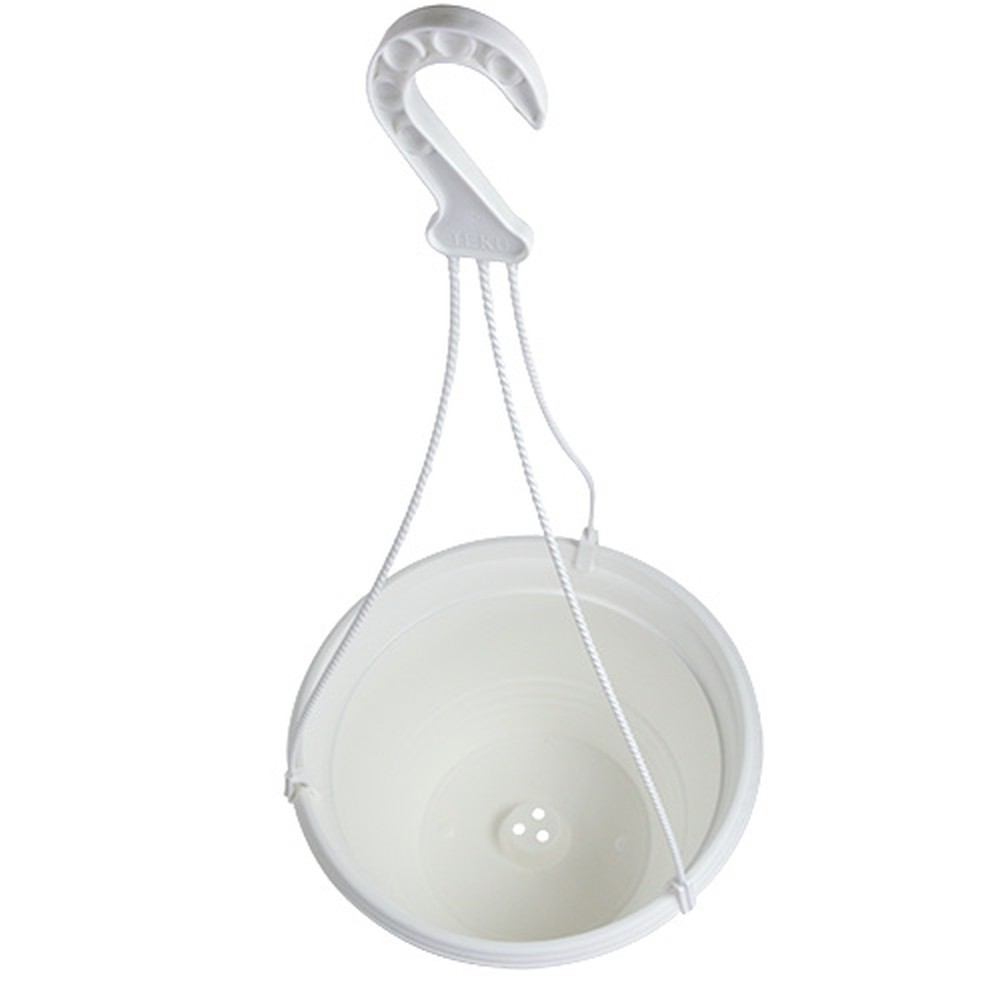 Varusteena istutusliikennevalossa on tietenkin kestävä ripustuslaite, joka koostuu kolmesta muovijousesta ja suuresta koukusta. Näin voit kiinnittää istutusastian muun muassa parvekekaiteeseen, räystääseen tai toiseen koukkuun katossa tai seinässä. Lumoavan kontrastin ripustettavien korien yksinkertaiselle valkoiselle muodostavat muuten värikkäät kukat, kuten petuniat, begoniat ja fuksiat, jotka valuvat istutusastian reunan yli.