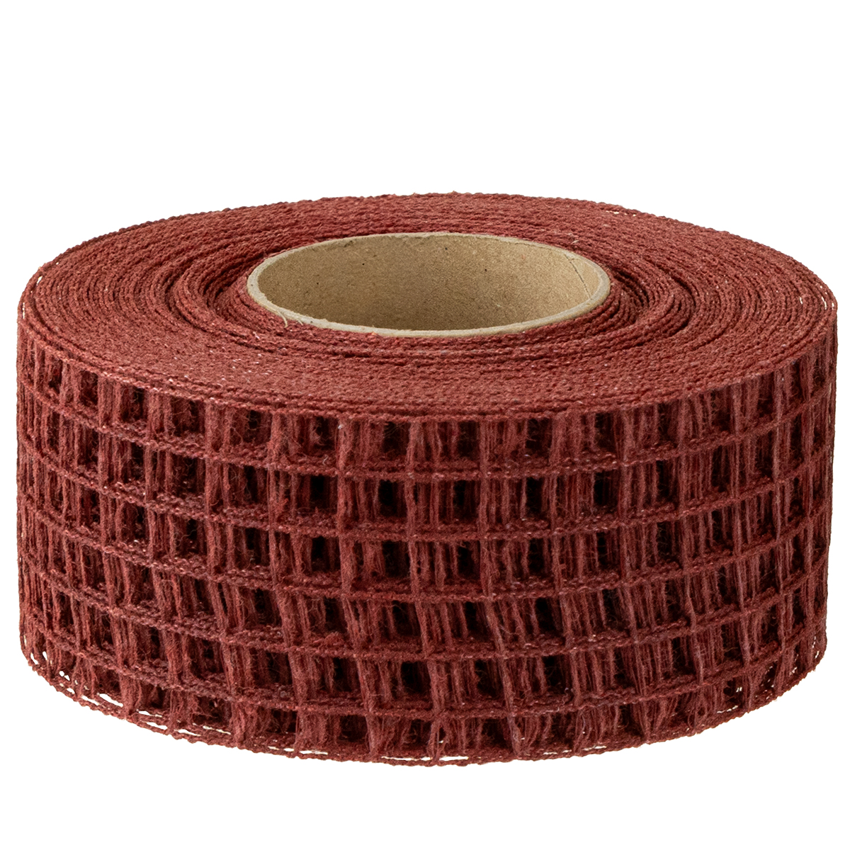 Bordeaux värinen ristikkoteippi on rullalle kääritty ja sen pituus on noin 10 metriä ja leveys noin 4,5 senttimetriä.