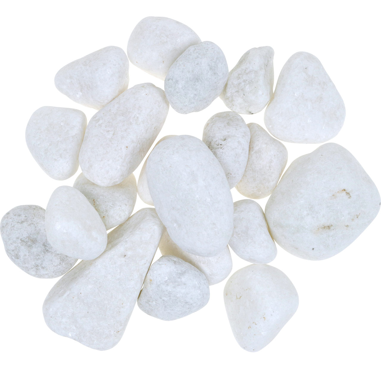Valkoiset pikkukivet toimitetaan 1 kilon nettopakkauksessa. Koristekivien likimääräinen koko 3-5 senttimetrin välillä voidaan antaa ainoastaan suuntaa-antavasti ja sitoumuksetta.