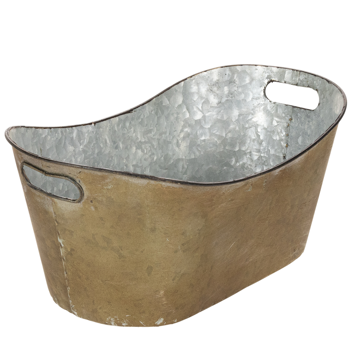 Olipa kyseessä puutarhavaja, parveke tai terassi - tämä vintage-ilmeinen istutuskasetti herättää huomion. Kolme metallista valmistettua kylpyammetta muodostavat setin. Sisällä näet metallin kiiltävän. Ulkopuolelta ammeet on pesty kuparinvärisiksi ja valkoisiksi.