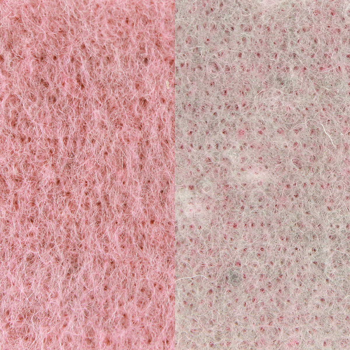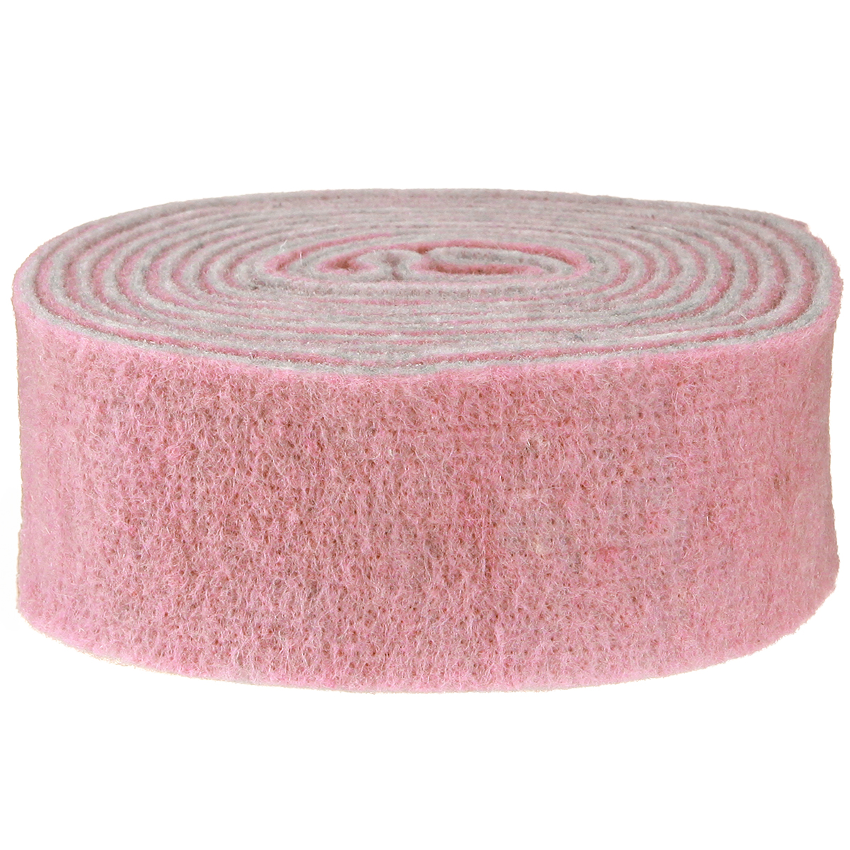 Huovasta valmistettu pattinauha vanhan vaaleanpunaisen ja harmaan sävyissä on 100 % lampaanvillaa. Saat noin 7,5 senttimetriä leveän ja noin 5 metrin pituisen kapean potteipin rullana.