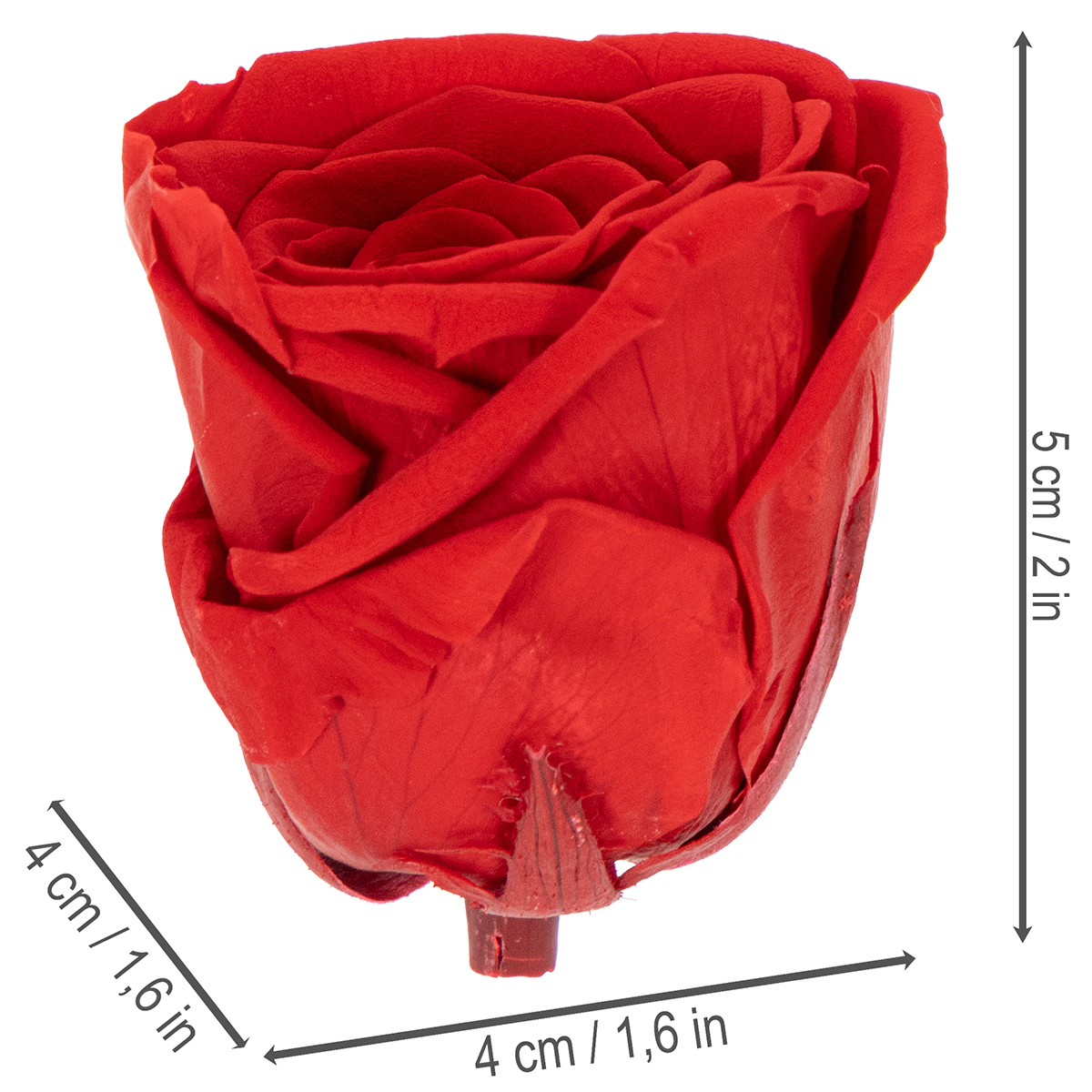 Säilöttymme ruusut tekevät vaikutuksen loistavalla punaisella värillään ja korkealaatuisella työllään. Jokainen ruusu valitaan ja säilötään huolellisesti erityisellä menetelmällä. Tämä varmistaa, että kukan luonnollinen rakenne ja ulkonäkö säilyvät – aivan kuin se olisi vastapoimittu. Noin 5 cm korkeat ja 4 cm halkaisijaltaan olevat ruusut ovat täydellisesti mittasuhteiltaan täydelliset tuomaan ripauksen eleganssia mihin tahansa sisustukseen.