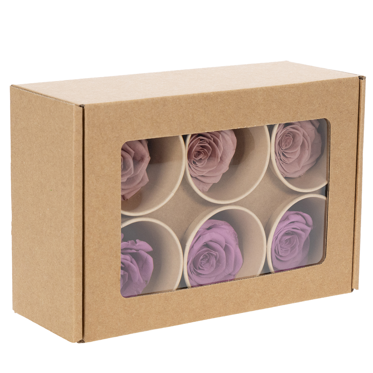 Elegantin liilan väriset säilöntäruusumme ovat todellisia monitoimimiehiä ja täydellinen kumppani erityisiin hetkiin. Saat kuusi kaunista ruusunpäätä, joiden halkaisija on 4 cm ja korkeus 5 cm. Ainutlaatuinen säilöntäprosessi varmistaa, että ruusut säilyttävät luonnollisen muotonsa, värinsä ja kauneutensa ilman minkäänlaista hoitoa. Ei kastelua, ei nuutumista – nämä ruusut on tehty kestämään ikuisesti. Aseta ne elegantiksi keskipisteeksi hääpöytääsi, käytä niitä luovissa askarteluprojekteissa tai anna ne romanttiseksi vuosipäivälahjaksi. Lämmin liilan sävy huokuu maagista rauhaa ja täydentää kauniisti moderneja koristeita tai vintage-tyylisiä yksityiskohtia.