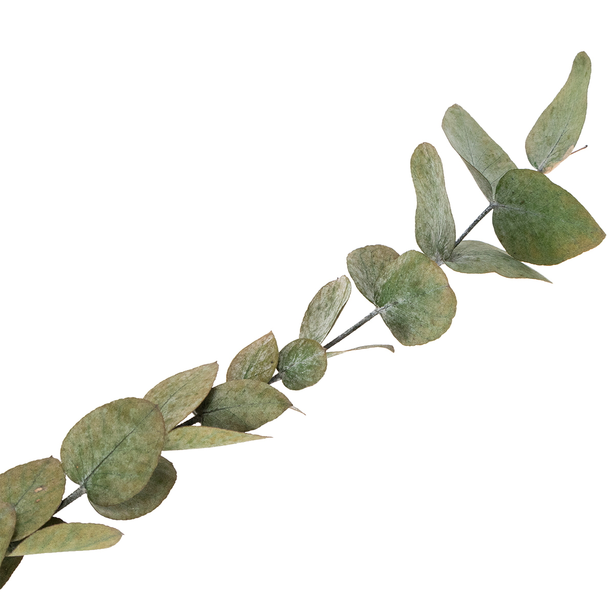 Säilötty eukalyptus, jonka vihreät lehdet roikkuvat oksissa, näyttää siltä kuin se olisi juuri poimittu puusta! Hellävarainen prosessi on säilyttänyt koristeellisen oksan luonnollisen ulkonäön. Tämän eukalyptuskasvin lehdet ovat tummanvihreitä ja niille tyypillinen valkeahko kiilto – yksinkertaisesti upea, ajattoman moderni kuivakukkakoriste!