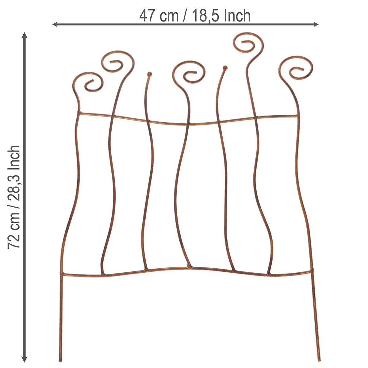 Luo pieni puutarhaparatiisi tällä taidokkaasti kaarevalla metallisäleiköllä ja lisää ripaus taikaa ulkotilaasi! Kuvittele köynnösruusujen tai muiden kasvien kiemurtelevan tiensä ylös tätä eleganttia metallisäleikköä pitkin ja antavan puutarhallesi romanttisen tunnelman. Hienostunut ruosteenharmaa viimeistely ja herkkä aaltomuoto tekevät tästä metallisesta puutarhakoristeesta todellisen katseenvangitsijan – olipa kyseessä sitten oma kotisi tai luova lahja puutarhaharrastajille.