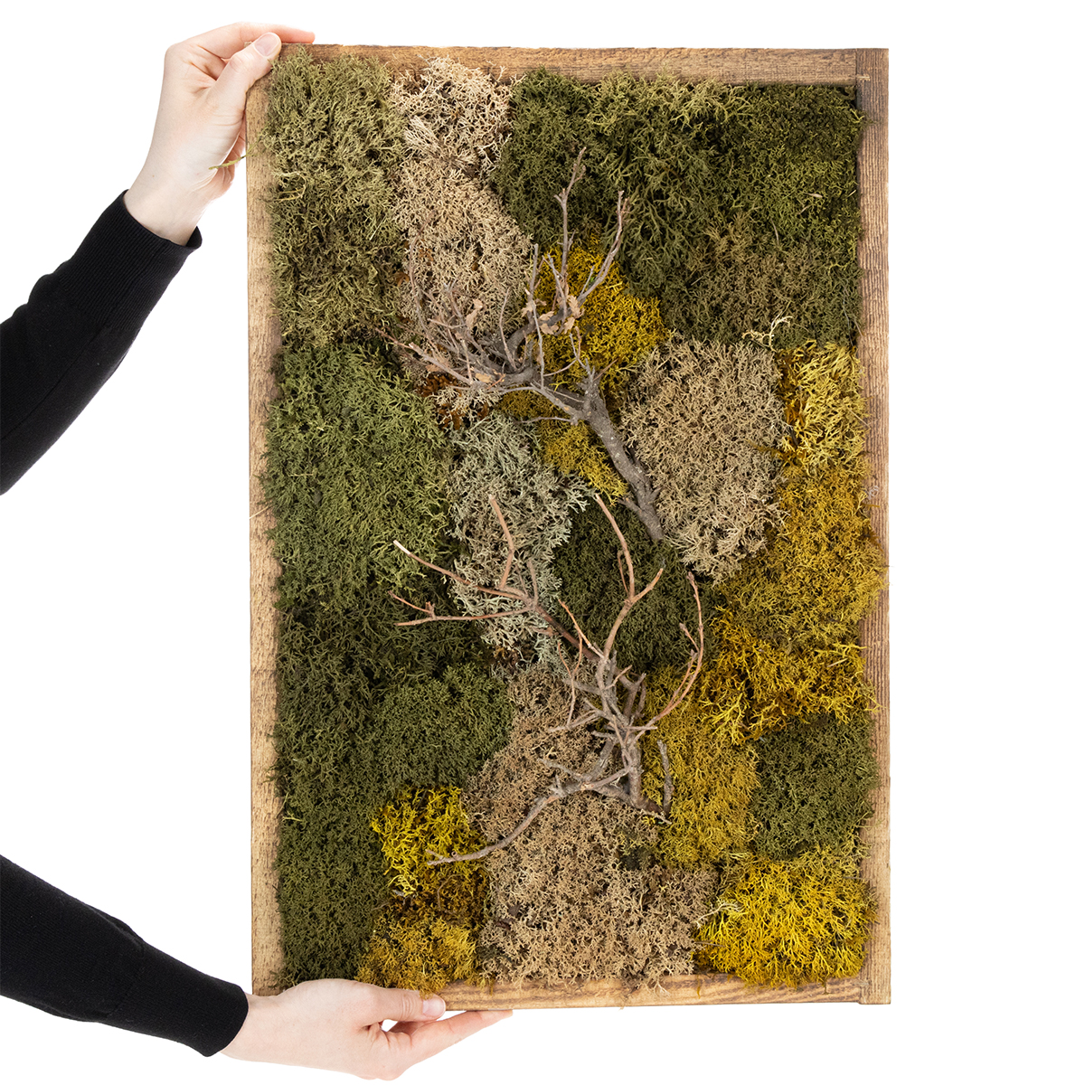 Löydä luonnon kauneus ja rauhallisuus monipuolisella sammalkuvallamme. Aito, säilynyt sammal yhdistettynä huolellisesti valittuihin oksiin tuo luonnon harmonisen tunnelman suoraan kotiisi tai toimistoosi.