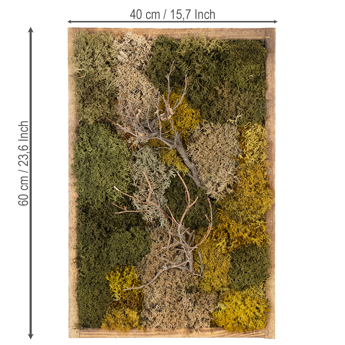 Sammalkuva, aitoa säilytettyä sammalta ja oksia, luonnonvärinen, 60 × 40 cm