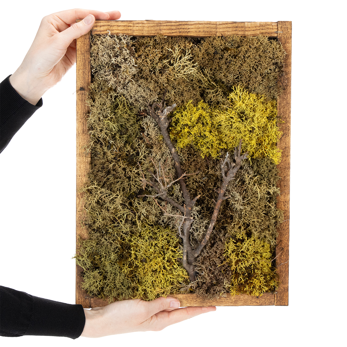 Löydä oikean sammalen rauhoittava vaikutus tyylikkäässä kehyksessä. Säilytetty sammalkuvamme on täydellinen vihreä seinäkoristelu mihin tahansa huoneeseen - olipa kyseessä olohuone, toimisto tai meditaatiohuone. Ainutlaatuinen siilisammalkuvio vihreän eri sävyissä ja keskellä oleva oksamotiivi tekevät sammaleesta katseenvangitsijan sisustuksessasi.