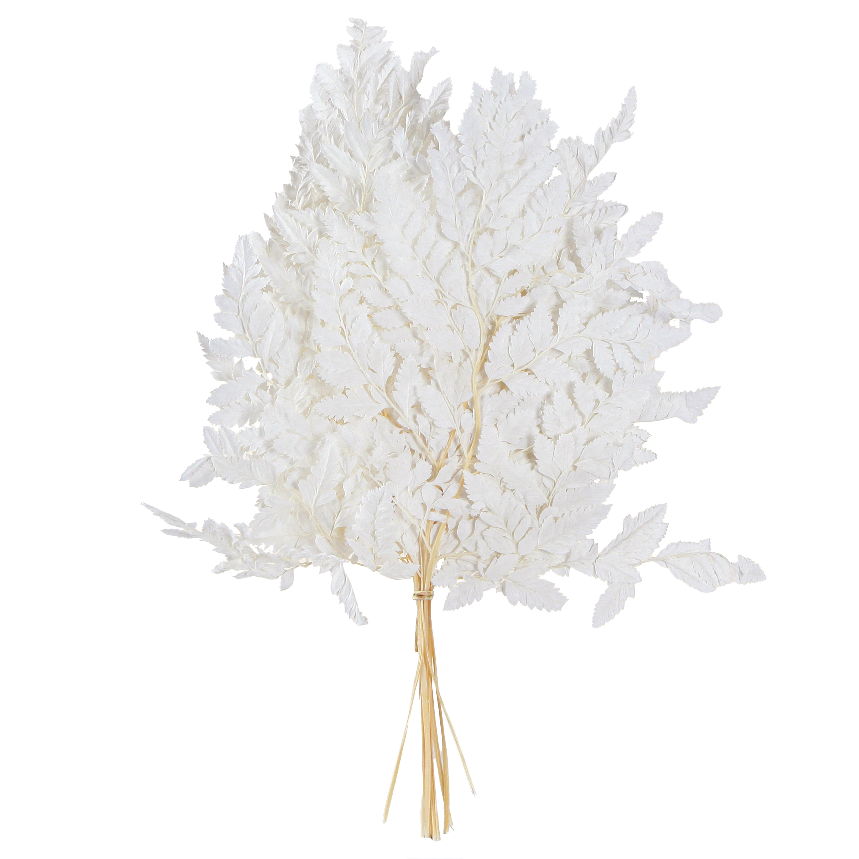 Lisää ripauksen luonnollista viehätysvoimaa kotiisi säilötyillä valkoisilla saniaislehdillämme. Tämä saniaiskoristelu tuo sisustukseen raikkaan ja tyylikkään ilmeen ilman vihreitä sormia. Täydellinen niille, jotka arvostavat luonnon kauneutta, mutta joilla ei ole aikaa tai mahdollisuutta hoitaa eläviä kasveja. Aidot saniaisten lehdemme on käsitelty tarkasti ja erityisellä säilöntämenetelmällä pitkäkestoisen kauneuden ja tuoreuden takaamiseksi. Tämän luonnollisen sisustuksen tyypillinen valkoinen väri täydentää leikkisästi moderneja ja klassisia sisustustyylejä. Nämä noin 45 cm:n pituiset saniaiskoristeet ovat silmiinpistävä lisävaruste mihin tahansa huoneeseen - olipa se sitten osana kukka-asetelmia, osana hääkoristeita tai tyylikkäänä pöytäkoristeena.