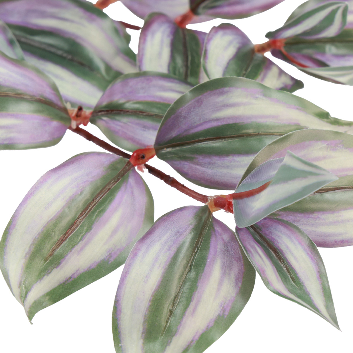 Tämä Tradescantia-tyyppi, joka tunnetaan myös seeprana riippuvana korina kauniiden vehreiden lonkeroidensa vuoksi, on erittäin suosittu huonekasvi ja myös keinotekoisesti silmien herkku. Erikokoiset lehdet toistavat seeprayrtin kolmivärisen vihreän, violetin ja kermanvärisen kuvion maalauksellisesti ja realistisesti.
