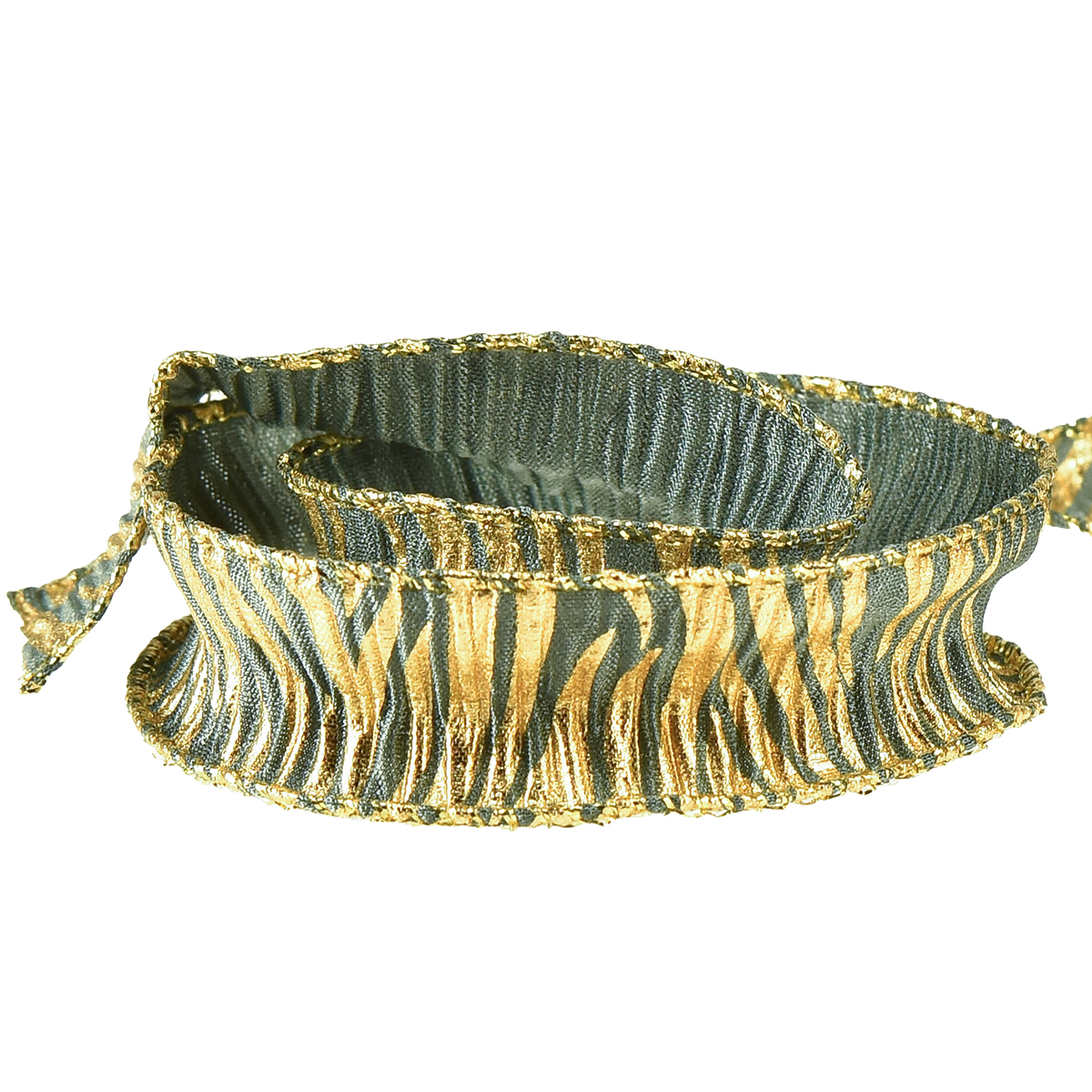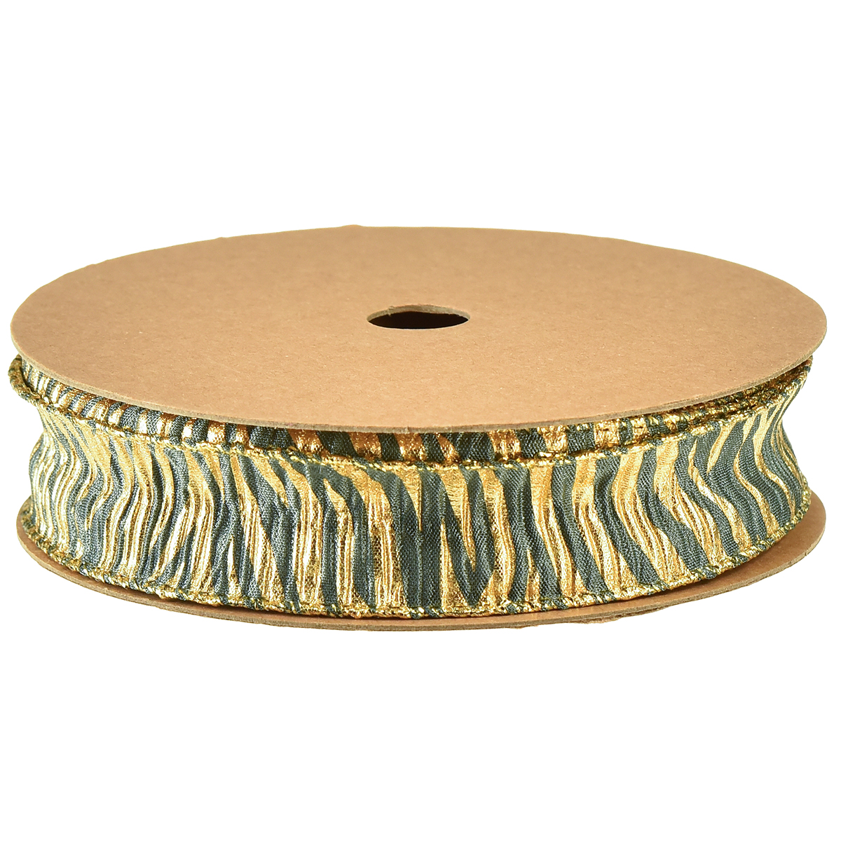 Sifonki koristenauha vihreä/kulta, 25mm leveys, 15m pituus - ihanteellinen lahjapaketointiin