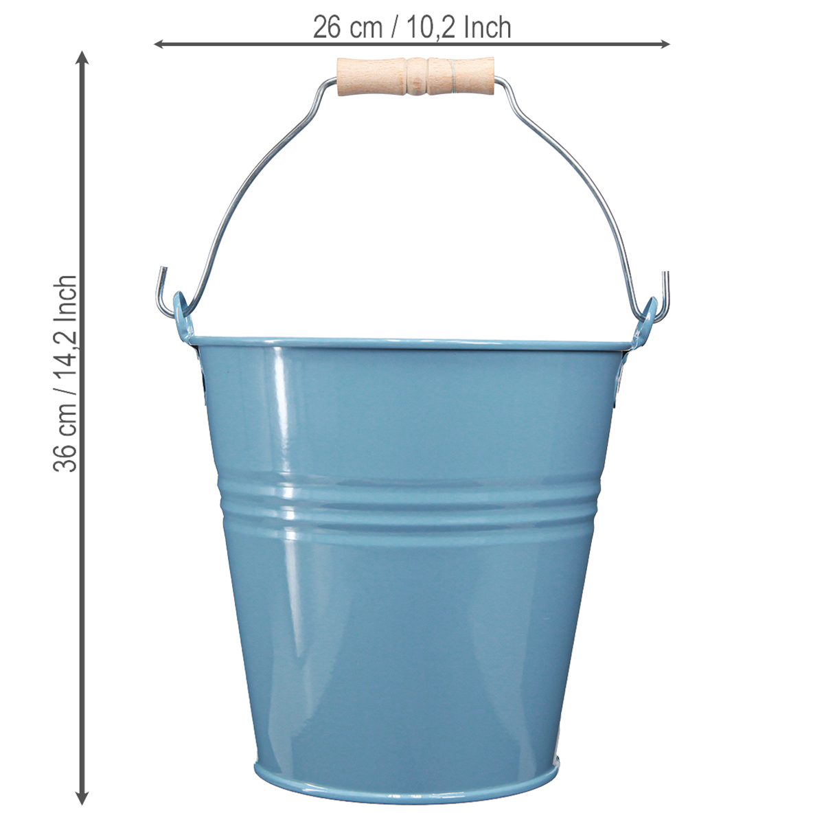 Tutustu viehättävään koristeelliseen ämpäriin ajattoman sinisenä. Metallista valmistettuna ruukkuna tämä tekee vaikutuksen elegantilla keveydellä ja vankuudellaan. Se on varustettu puisella kahvalla, ja siinä yhdistyvät toiminnallisuus ja koristeellinen viehätys, mikä sopii erinomaisesti sisä- ja ulkokäyttöön.