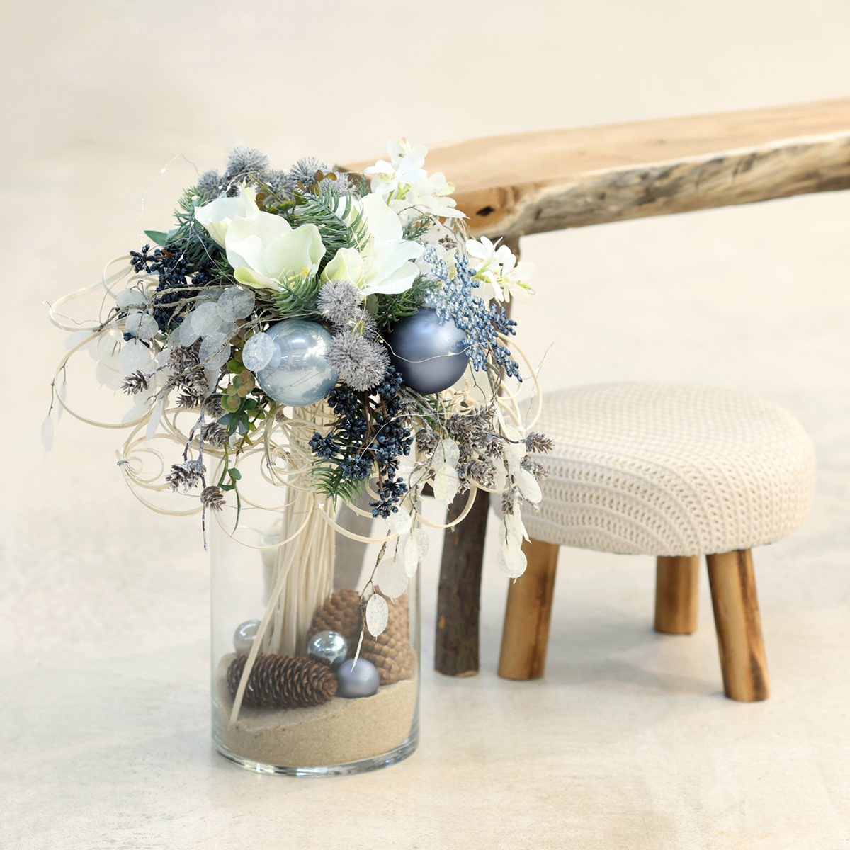 Kukapa ei rakastaisi säihkyvien väreissä hohtavaa joulukuusta? Sini-hopeinen pallosetti tuo juuri sitä juhlavaa taikaa kotiisi. Herkän sinisen ja elegantin hopean matta- ja kiiltävien pintojen yhdistelmä kirkastaa minkä tahansa puun. Kuvittele, kuinka valosarjasi valonheijastukset valaisevat nämä elegantit lasipallot – melkein kuin pieni ihmemaa. Olipa kyseessä perinteisesti koristellut kuusi tai modernit talviset kukka-asetelmat, nämä pallot ovat yksinkertaisesti täydellisiä. Ne sopivat myös täydellisesti juhlakattauksiin tai talvisiin kukka-asetelmiin. Mikset käyttäisi niitä luovina lahjapakkauksina? Mielikuvituksesi on rajana!