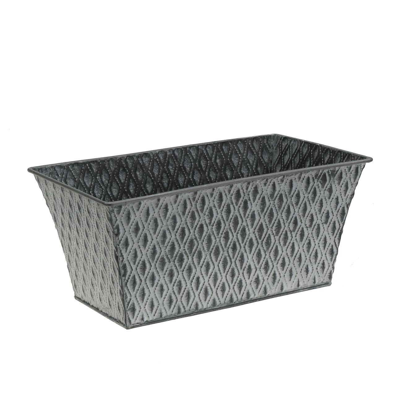 Moderni muotoilu kohtaa nostalgisen shabby chicin: tämä kulmikas sinkkikulho tekee vaikutuksen ennen kaikkea houkuttelevalla timanttikuviolla, joka on taidokkaasti lyöty metalliin. Tuloksena syntynyt reliefi korostuu erinomaisesti valkoisella pehmeällä pesulla, jolloin syntyy eräänlainen 3D-ilmiö ja ripaus vintagea. Näin jalon tuotemerkin VIANA sinkkiastia saa jalon ilmeen ja sopii täydellisesti yhteen kausiluonteisten kukka- ja kasviistutusten kanssa.