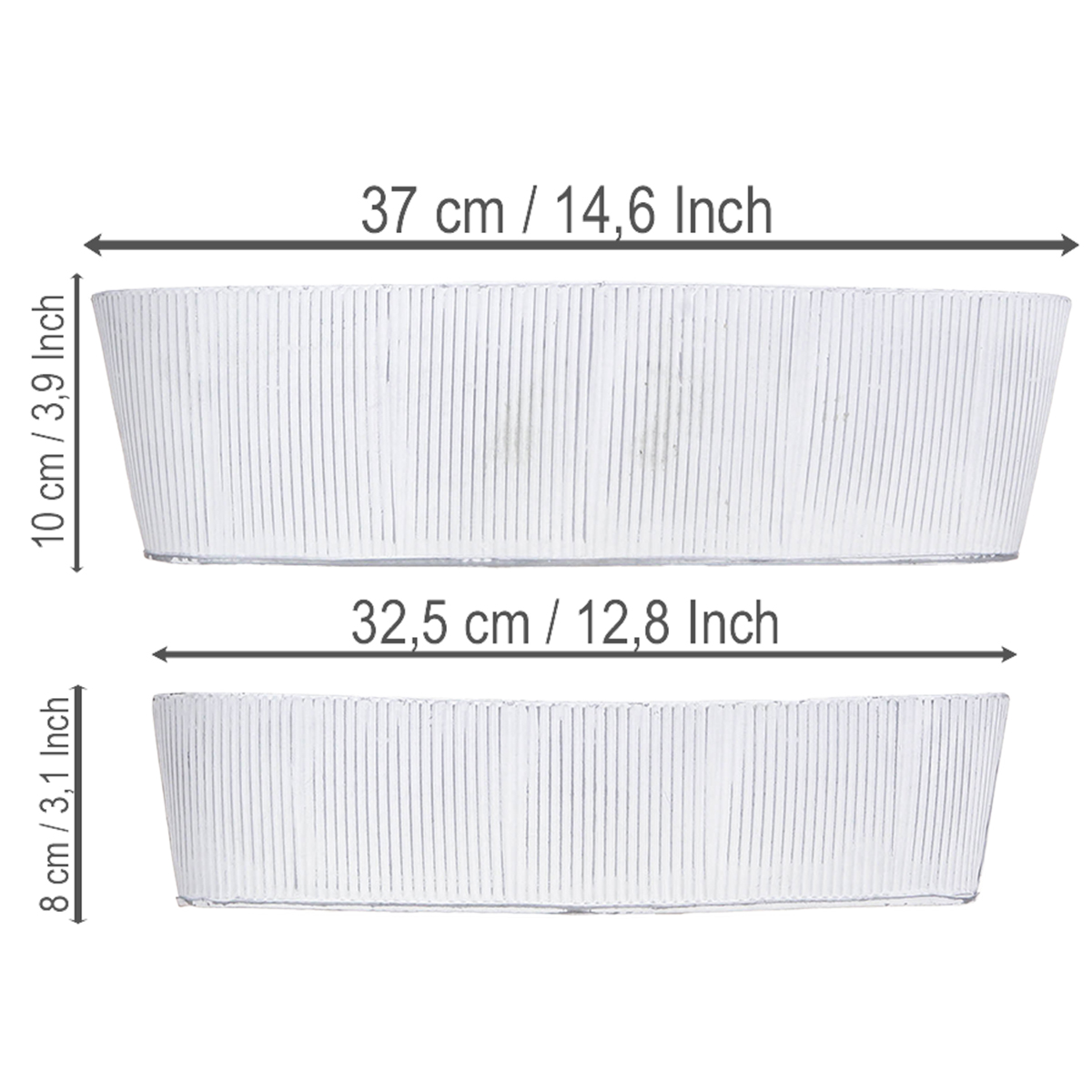 Soikea metallikulho valkoisena ja hopeana tuo kotiisi ripauksen retroa ja vintagea. Valkoiseksi pesty ulkopinta ja sisäpuolen hopeapinnoite tekevät näistä metallikulhoista korostuksia huoneesi sisustuksesta. Yksinkertainen, soikea muoto vetoaa nykyaikaiseen muotoiluun, joka voidaan integroida saumattomasti moderniin tai skandinaaviseen sisustustyyliin – ihanteellinen tyylikkääksi ja elegantiksi pöytäkoristeena. Yhdistettynä Floristik24:n metallisisustuskategorian tarvikkeisiin tuloksena on harmoninen kokonaiskuva. Uritettu sisustus sekä valkoisen ja hopean yhdistelmä korostavat viehättävää kiiltoa ja tekevät näistä kulhoista unohtumattoman kohokohdan minkä tahansa senkki- tai ruokapöytään.
