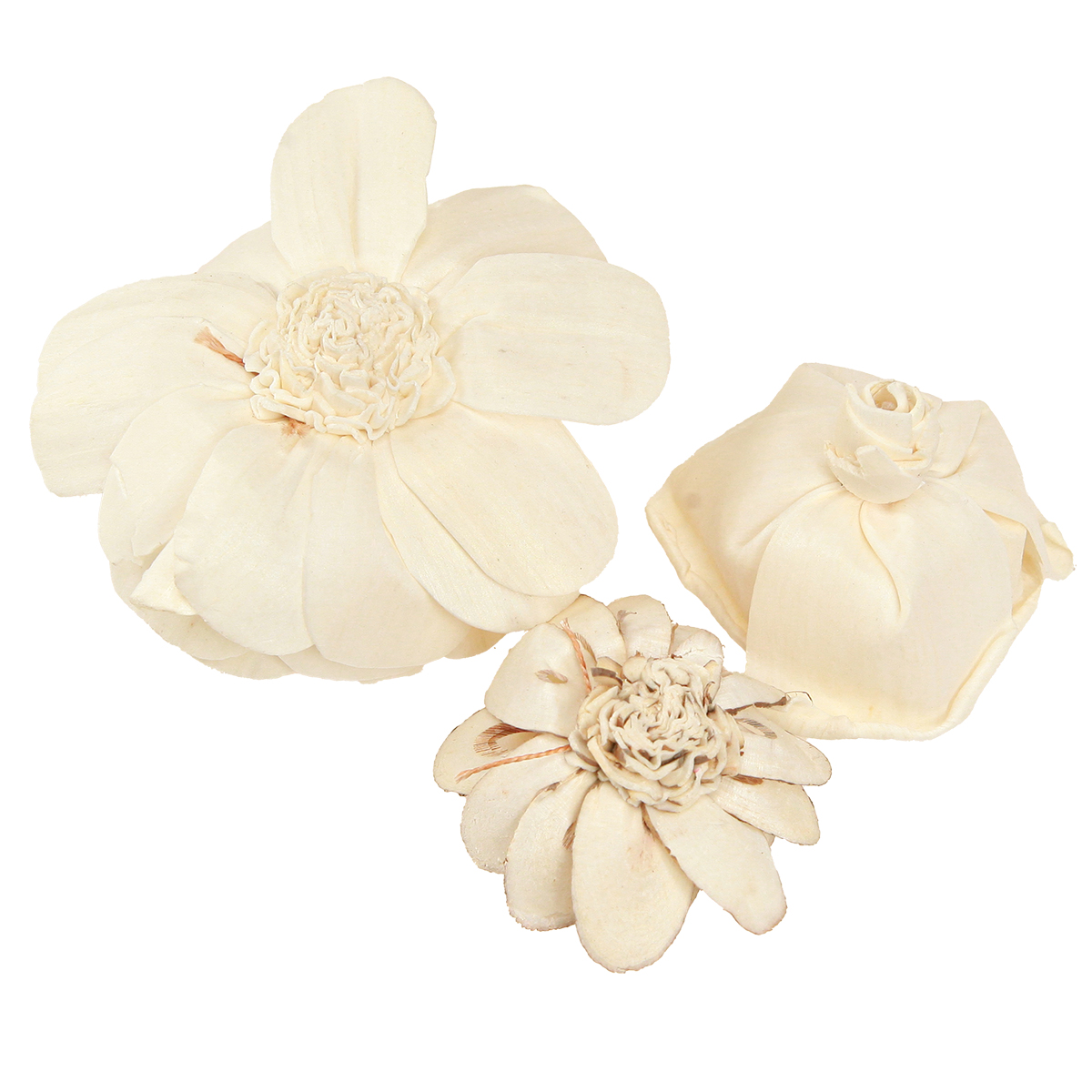 Sola Flowers puisia puukukkia koristeeksi, kermanvärinen, sekoitus, 6-11 cm, 12-15 kpl