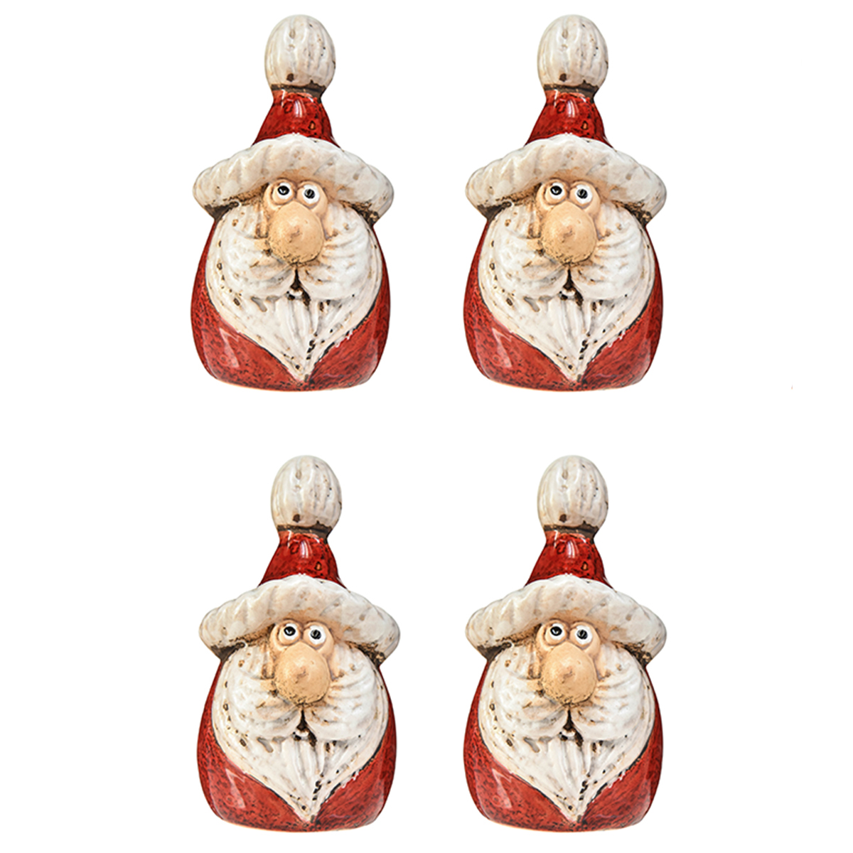 Suloinen keraaminen Joulupukin figuuri, punainen ja valkoinen, 10cm - täydellinen joulukoristeita - 4 kpl