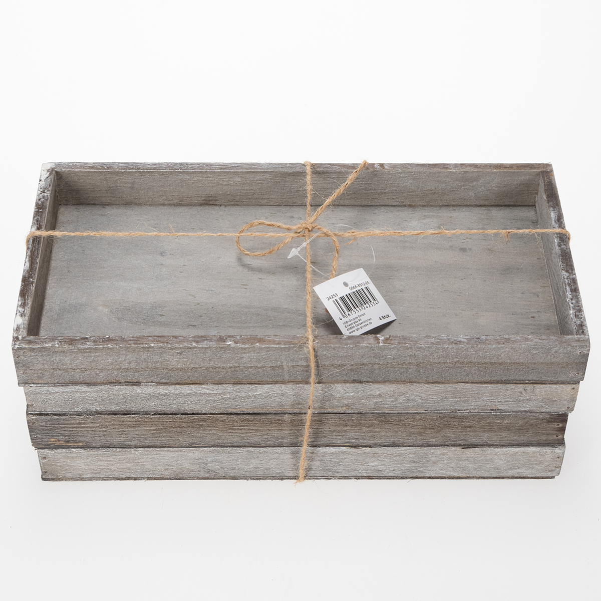 Kukapa ei olisi kokeillut tätä? Asettelet kauniin koristeen, tarjoilet välipaloja tai etsit käytännöllistä organisointiratkaisua – ja lopulta se tietty "jotain" puuttuu, se yksi asia, joka sitoo kaiken yhteen. Tässä kohtaa maalaismainen puinen tarjotin astuu kuvaan! Suorakaiteen muotoinen, luonnonharmaa väri ja 30 x 15 x 3 cm:n mitat tekevät siitä paitsi toiminnallisen kohokohdan, myös todellisen katseenvangitsijan. Olipa kyseessä sitten keittiö, olohuone tai vaikkapa kylpyhuone: tämä puinen tarjotin pitää asiat siistinä ja antaa huoneillesi aidon vintage-silauksen. Täydellinen maalaistyylin tai modernin minimalismin ystäville! Pieni vinkki: Kuvittele asettavasi kynttilöitä tarjottimelle, ehkä kuivattujen kukkien tai yrttien kanssa. Kuulostaako ihanalta? Se on! Ja parasta: saat neljä tarjotinta setissä – antaen sinulle runsaasti tilaa luovuudellesi kotonasi.