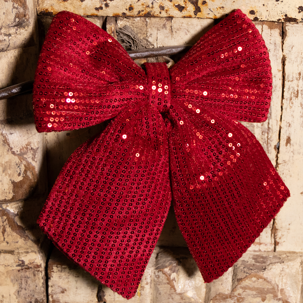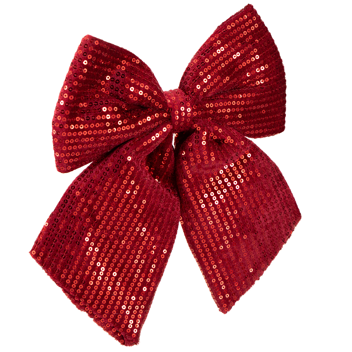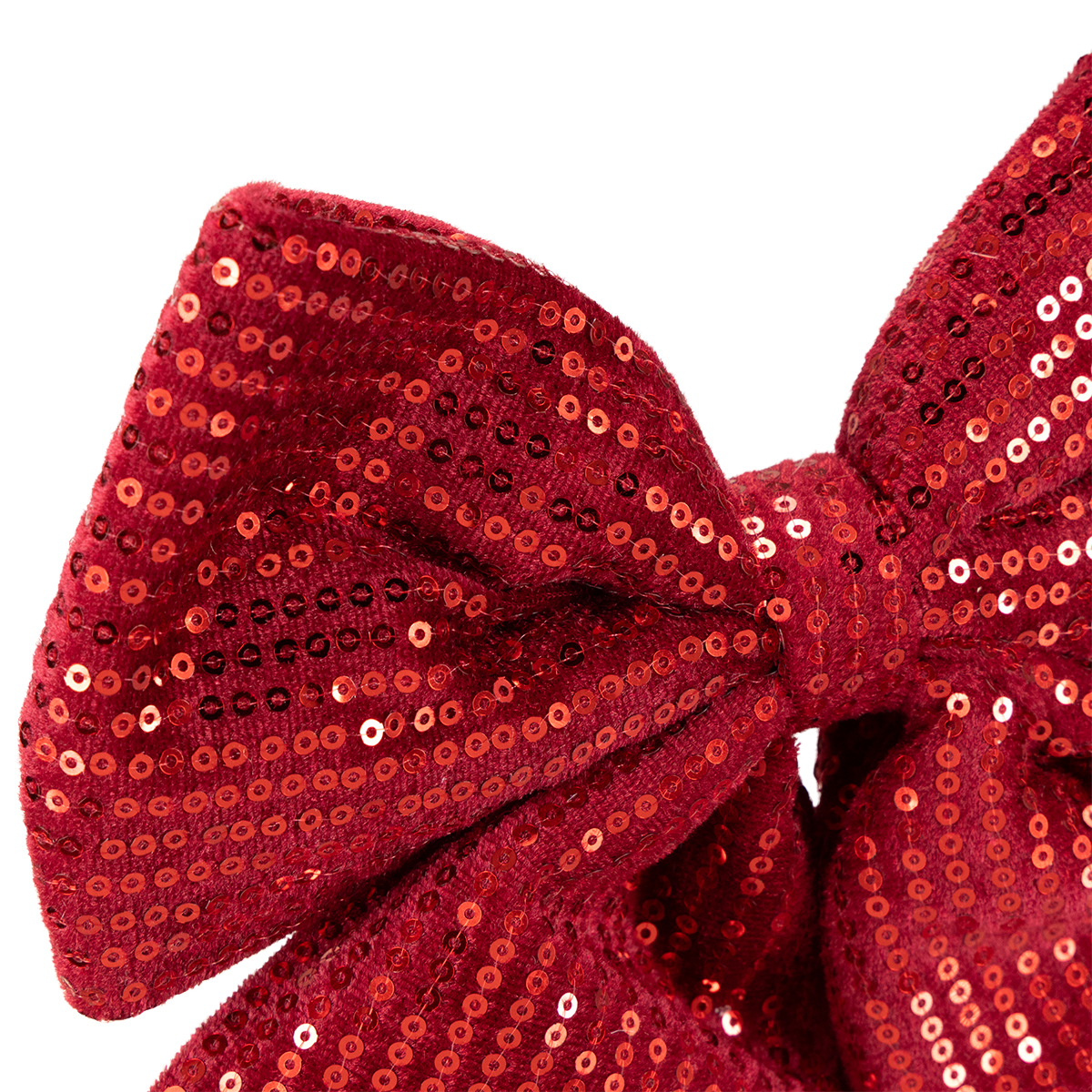 Suuri tummanpunainen samettinen rusetti – eleganssia ja paljetteja juhlavalla kiillolla