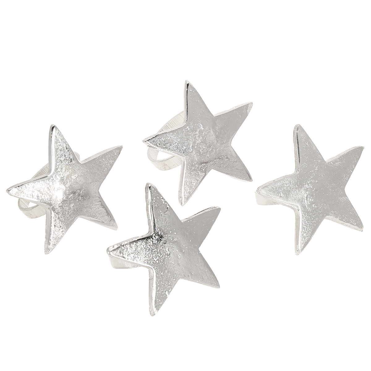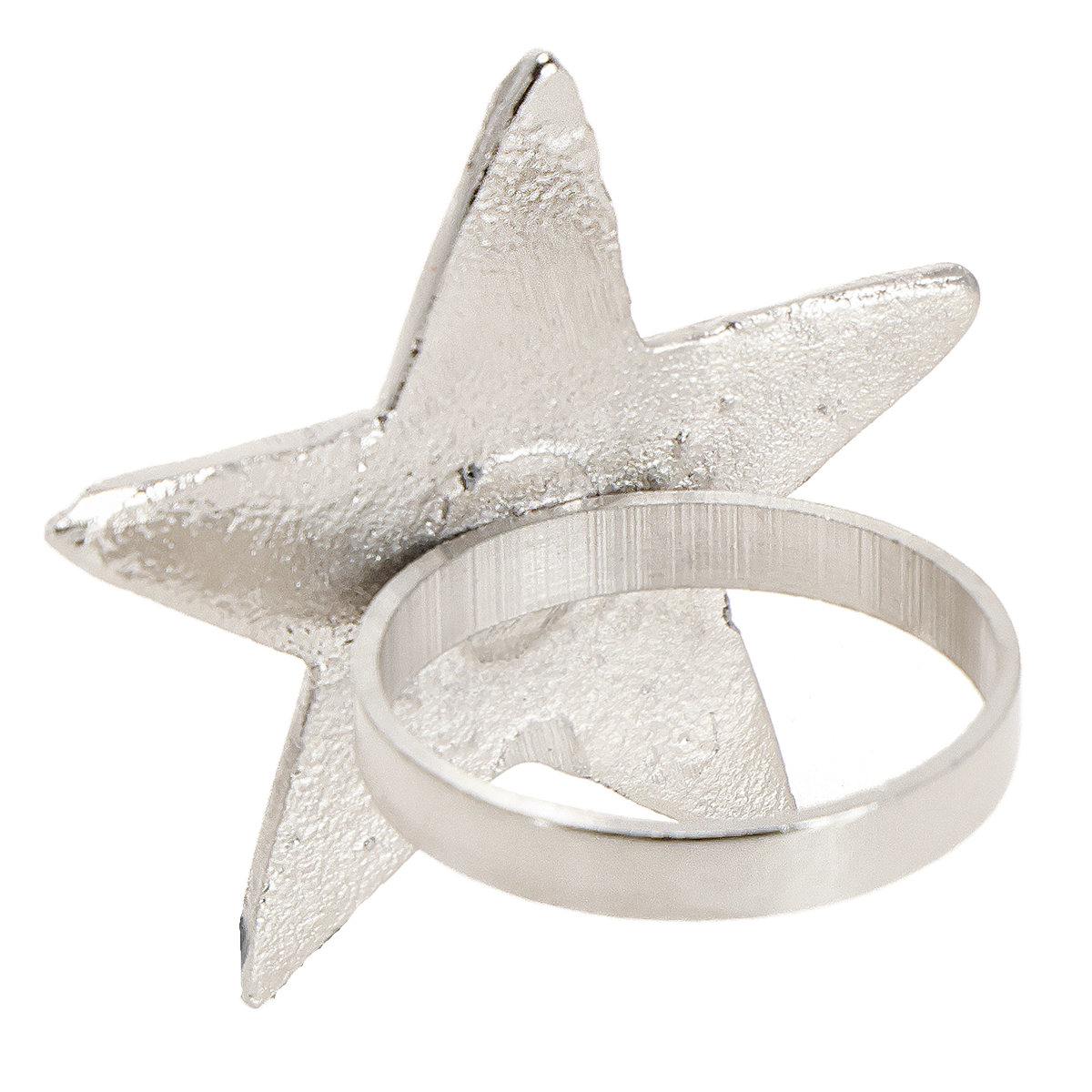 Tähdenmuotoiset lautasliinatelineet, hopeanväriset metalliset lautasliinarenkaat, halkaisija 7 cm, 4 cm, 4 kpl