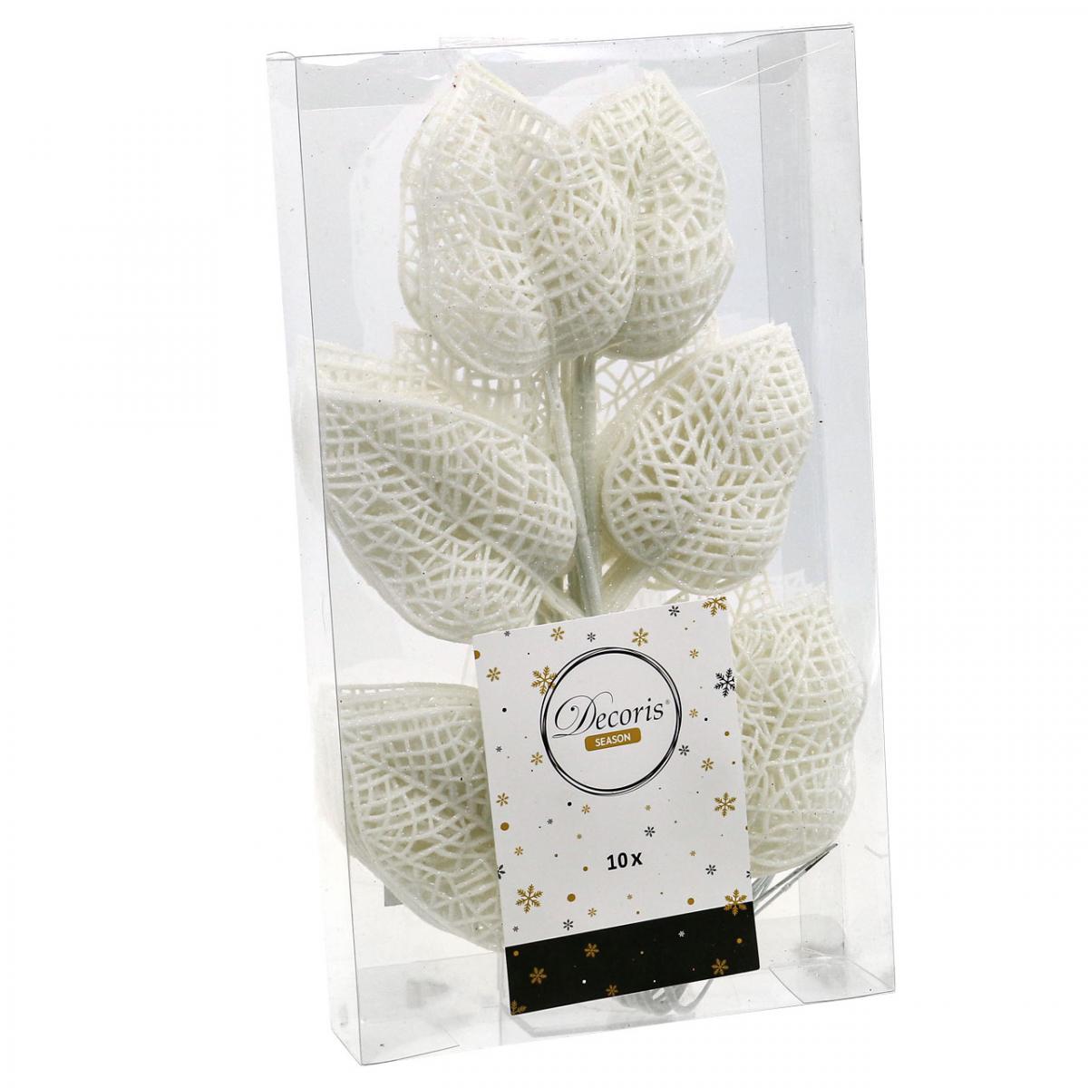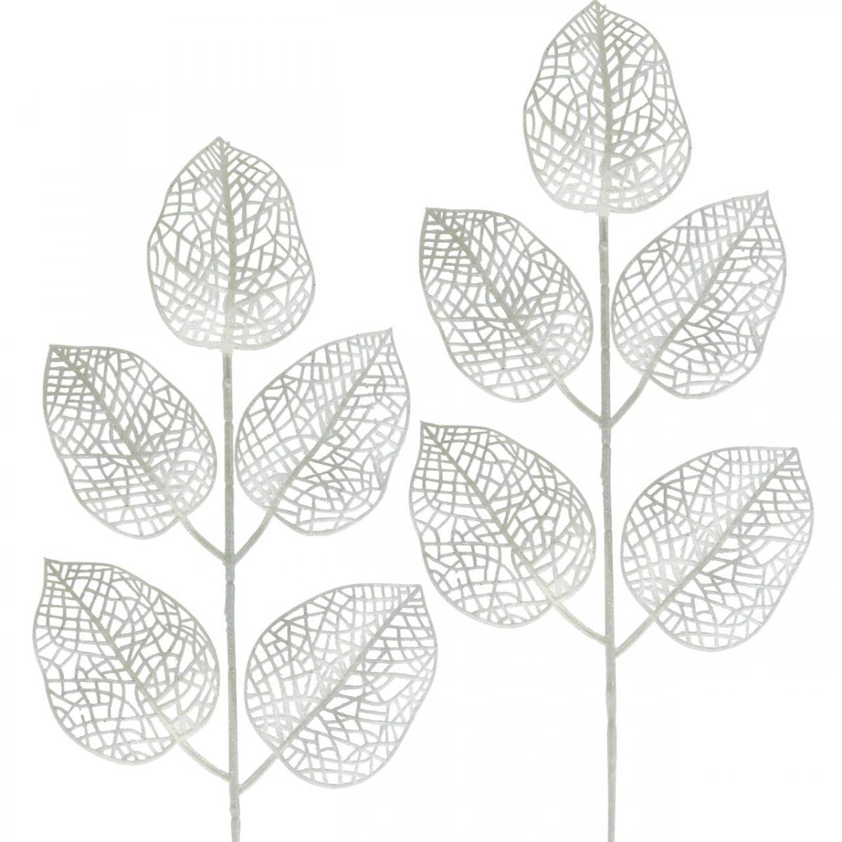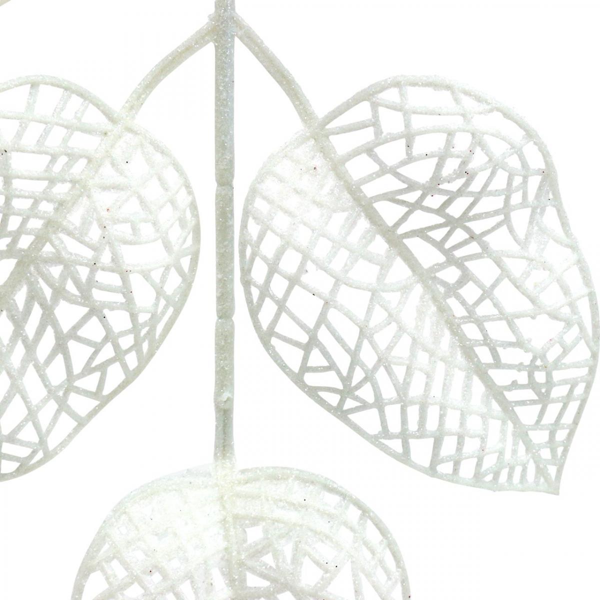 Talvikoristeet, koristelehdet, tekooksa valkoinen glitter L36cm 10p
