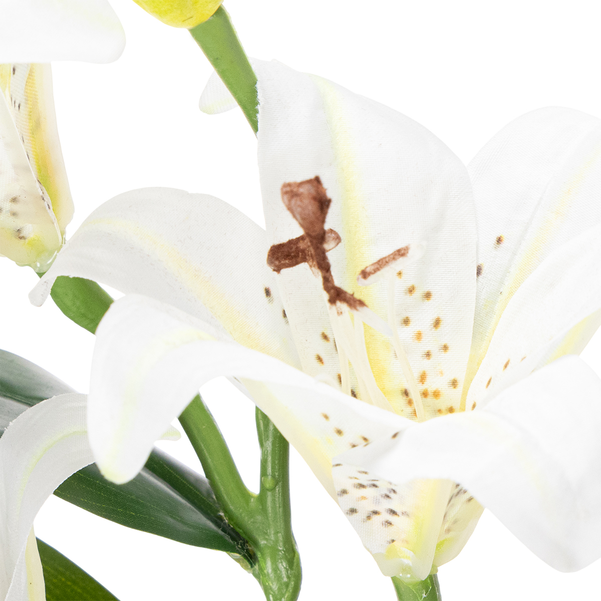 Nämä korkealaatuiset tekoliljat tekevät vaikutuksen realistisella muotoilullaan ja hienovaraisella viehätysvoimallaan. Ne sopivat täydellisesti minimalistisen olohuoneen korostamiseen, mutta näyttävät upeilta myös romanttisessa maalaistyylisessä ympäristössä. 66 cm korkeina kukkina ne sopivat sekä maljakoihin että suurempiin asetelmiin. Polyesteri- ja muovimateriaali takaavat luonnollisen ilmeen ja miellyttävän tuntuman.