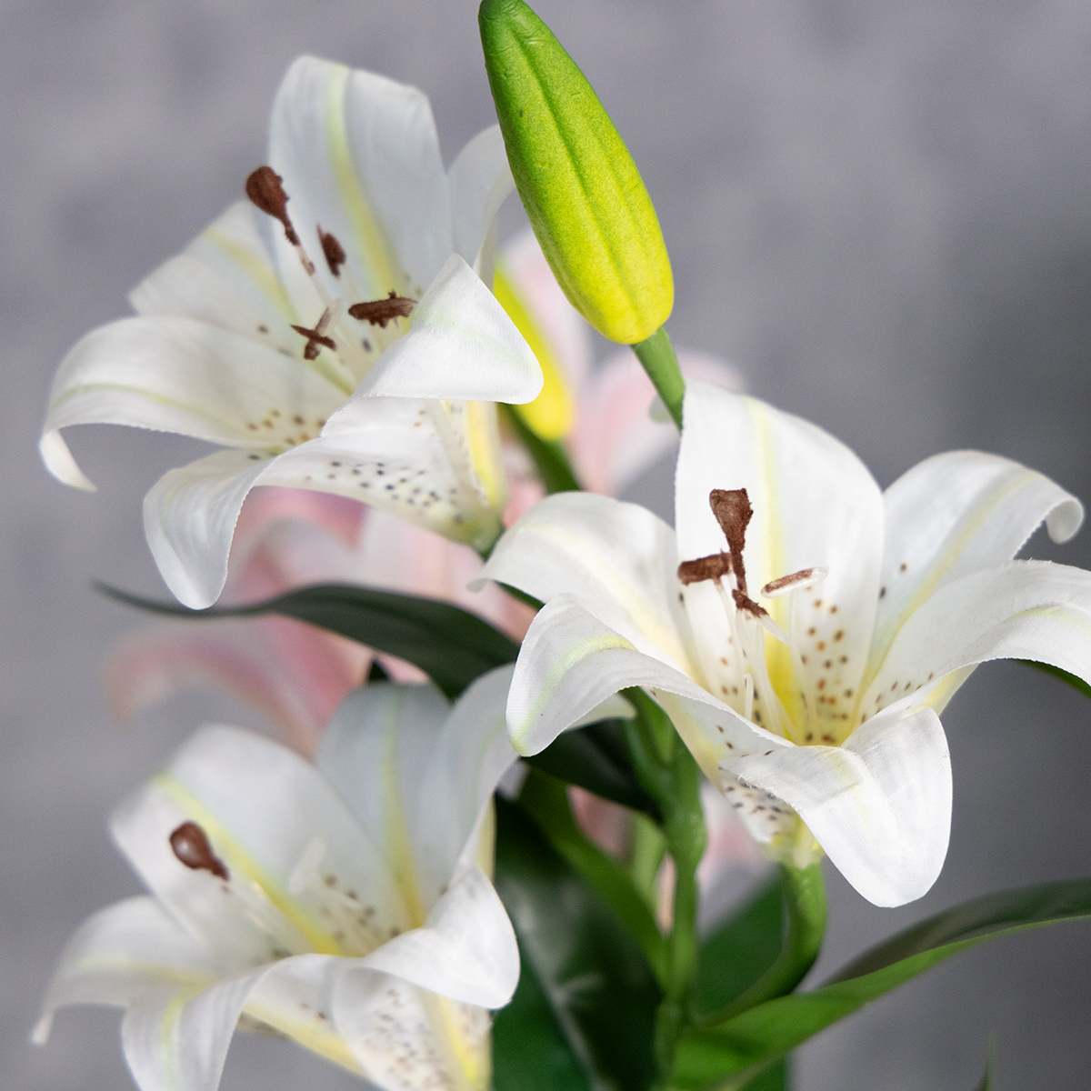 Olipa kyse sitten tyylikkäästä olohuoneen sisustuksesta, tyylikkäästä toimiston sisustuksesta tai vaikuttavista hääasetelmista: nämä liljat ovat todellisia monitoimikoita. Yksinkertaisesta ja elegantista ilmeestä pitäville ne voivat yhdistää ne valkoisiin tai kermanvärisiin asusteisiin; jännittävän kontrastin luomiseksi suositellaan rohkeita värejä, kuten tummanvihreää, viininpunaista tai kultaista. Anna luovuutesi lentää ja tee näistä eleganteista liljoista sisustuksesi keskipiste!