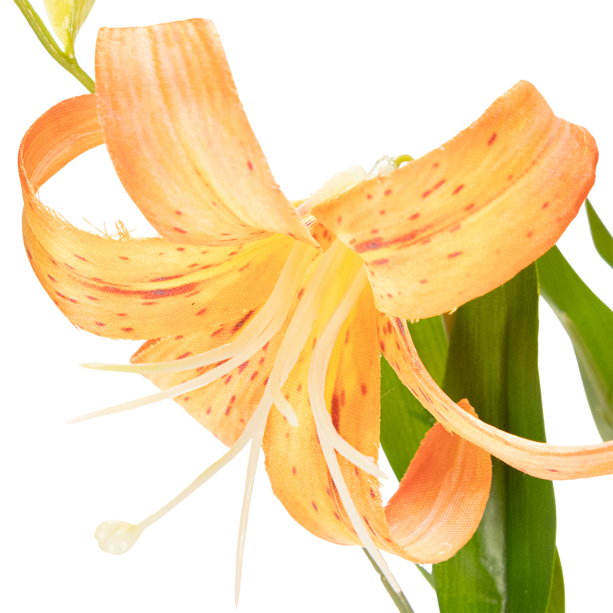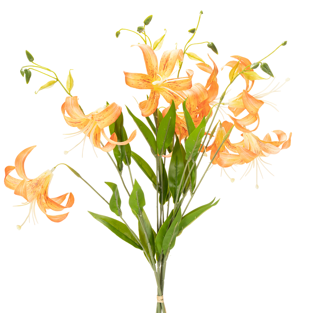 Miksi valita tekokukat? Se on yksinkertaista: säästät itsesi huollon vaivalta ja nautit silti vasta asetellun koristeen ulkonäöstä. Elävän oranssinvärisillä kukillaan nämä liljat näyttävät fantastisilta missä tahansa ympäristössä. Polyesterin ja muovin yhdistelmä takaa elävän vaikutelman, ja joustavat varret mahdollistavat helpon säätämisen ja sijoittelun. Aseta ne korkeisiin maljakoihin eleganttia vastaanottoaluetta varten tai asettele ne kauniisti pöydälle – ne sopivat mihin tahansa tyyliin, olipa se sitten klassinen, moderni tai boheemi. Nämä tekokukat ovat erityisen suosittuja hääkoristeiden joukossa: tunnelmalliset asetelmat vihkimiseen, lumoavat pöytäkoristeet tai vaikuttavat sisäänkäyntikoristeet voidaan luoda hetkessä. Ja lisäbonuksena: kukat eivät ainoastaan kestä koko erityistä päivääsi, vaan ne pysyvät kauniina muistona vuosiksi eteenpäin. Suunnitteletko tapahtumaa ja tarvitset kukkaisia katseenvangitsijoita? Olipa kyseessä sitten suurikokoiset mallit tai yksityiskohtaiset pöytäasetelmat, nämä liljat ovat juuri sitä, mitä etsit. Täydennä niiden loistoa yhteensopivilla asusteilla, kuten herkillä nauhoilla, tekonurmilla tai kynttilänjaloilla – mahdollisuudet ovat rajattomat.