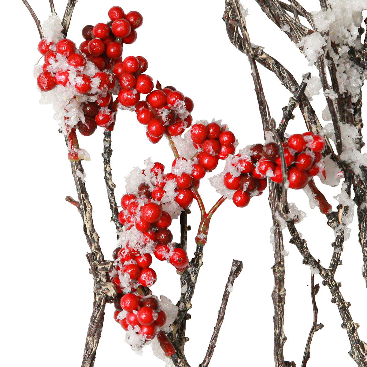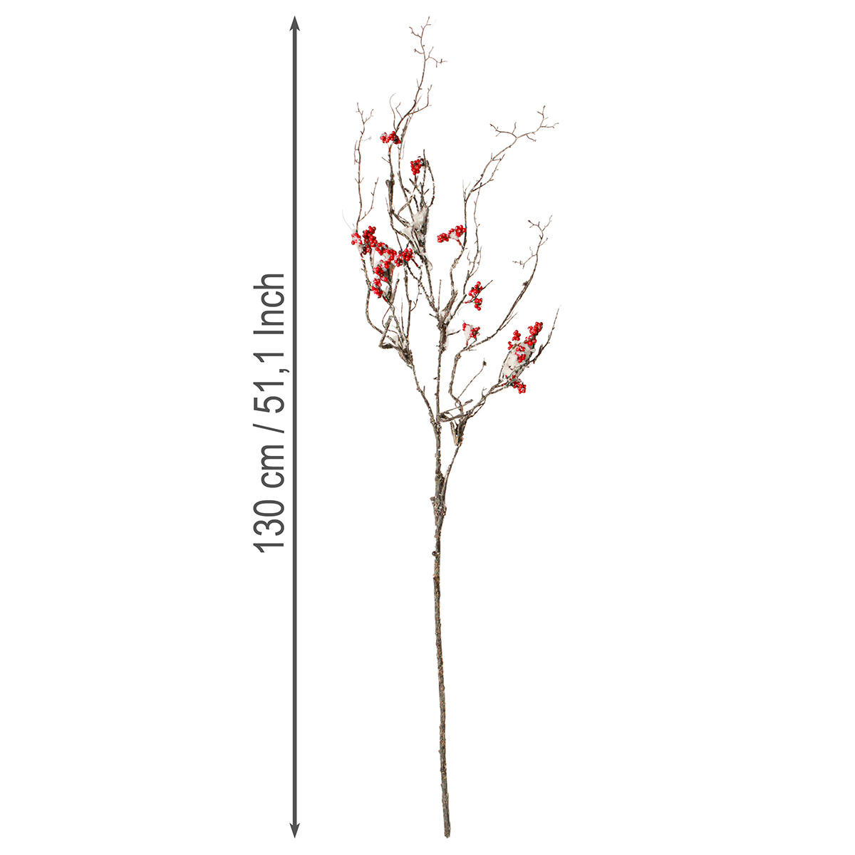 Tekooksa, pitkä, luminen oksa punaisilla marjoilla, 130 cm