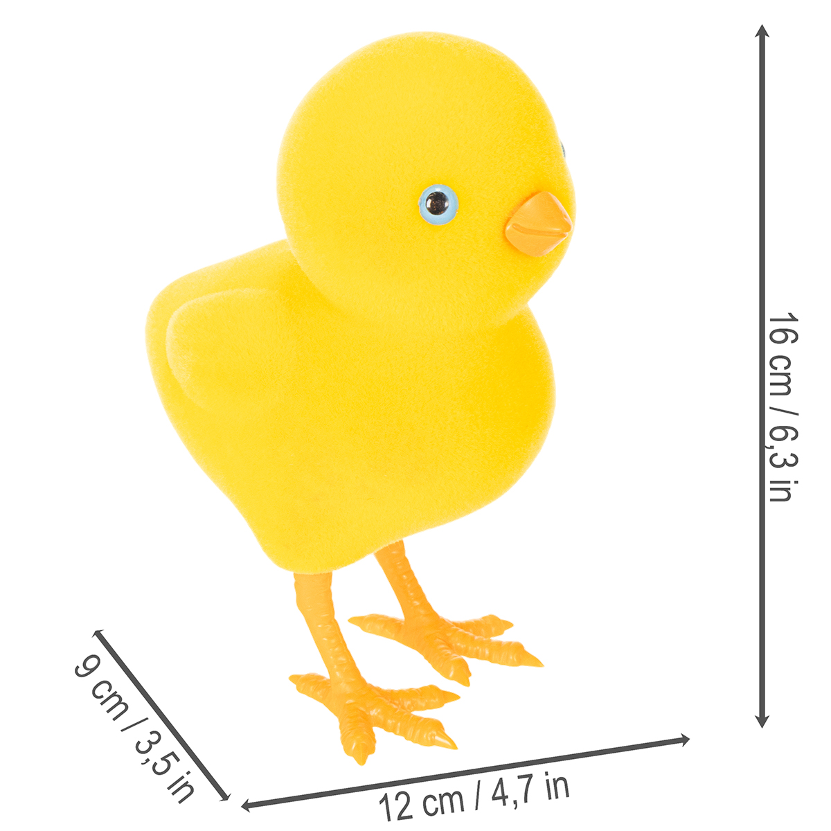 Nämä keltaiset tipuhahmot ovat 16 senttimetriä korkeita, 9 senttimetriä leveitä ja 12 senttimetriä pitkiä, ja ne sopivat täydellisesti monenlaisiin sisustusideoihin. Niiden kirkkaan keltainen väri tuo kevyitä hetkiä mihin tahansa olohuoneeseen ja täydentää harmonisesti olemassa olevia pääsiäiskoristeitasi. Hahmot ovat kevyitä, tukevia ja valmistettu korkealaatuisesta muovista, mikä tekee niistä erityisen kestäviä ja helppoja puhdistaa.