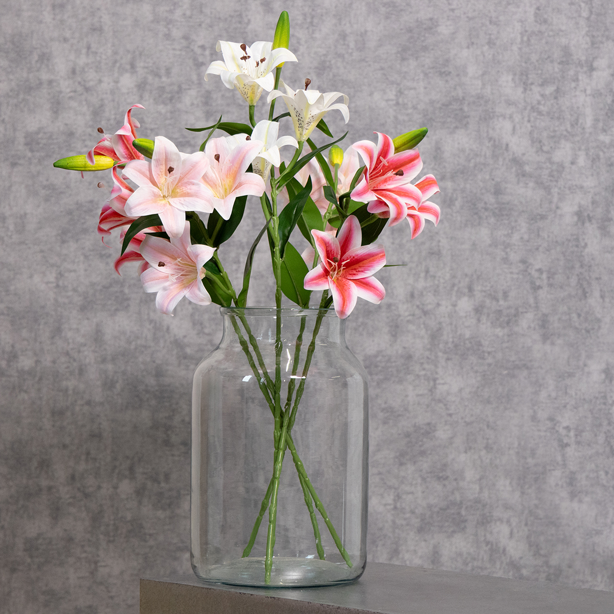 Näiden tekoliljojen huolellinen käsityötaito tekee vaikutuksen vaativimpaankin silmään. Herkät vaaleanpunaiset terälehdet hienovaraisella liukuvärjäyksellään ja realistisilla heteillään luovat luonnollisen ilmeen, joka ilahduttaa vieraitasi. Reilun 67 cm korkeina liljan varret sopivat ihanteellisesti korkeisiin maljakoihin, kun taas filigraanilehdet antavat kuosille keveyttä ja eleganssia.