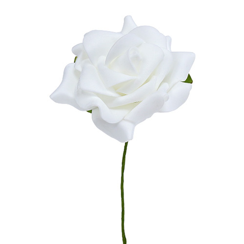 Valkoisen vaahtoruusun kukan halkaisija on noin 7,5 senttimetriä; kukat ovat noin 4,5 senttimetriä korkeita. Varren kanssa koristeruusun kokonaispituus on noin 24 senttimetriä. Vaahtomuoviruusuja on 18 kappaletta, joten voit aloittaa koristelun heti! Älä kuitenkaan koristele vain hääjuhlaa: vaahtoruusut sopivat myös ristiäisten, konfirmaatioiden tai ensikommuunion koristeluun.