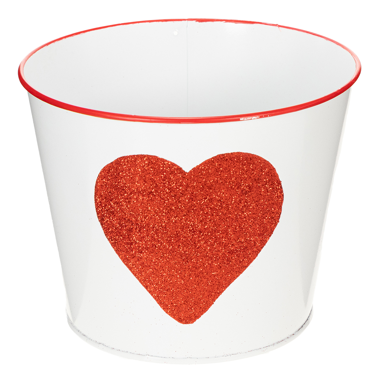 Valkoinen kukkaruukku punaisella sydämellä, istutusastia, Ø18cm, korkeus 13,5cm