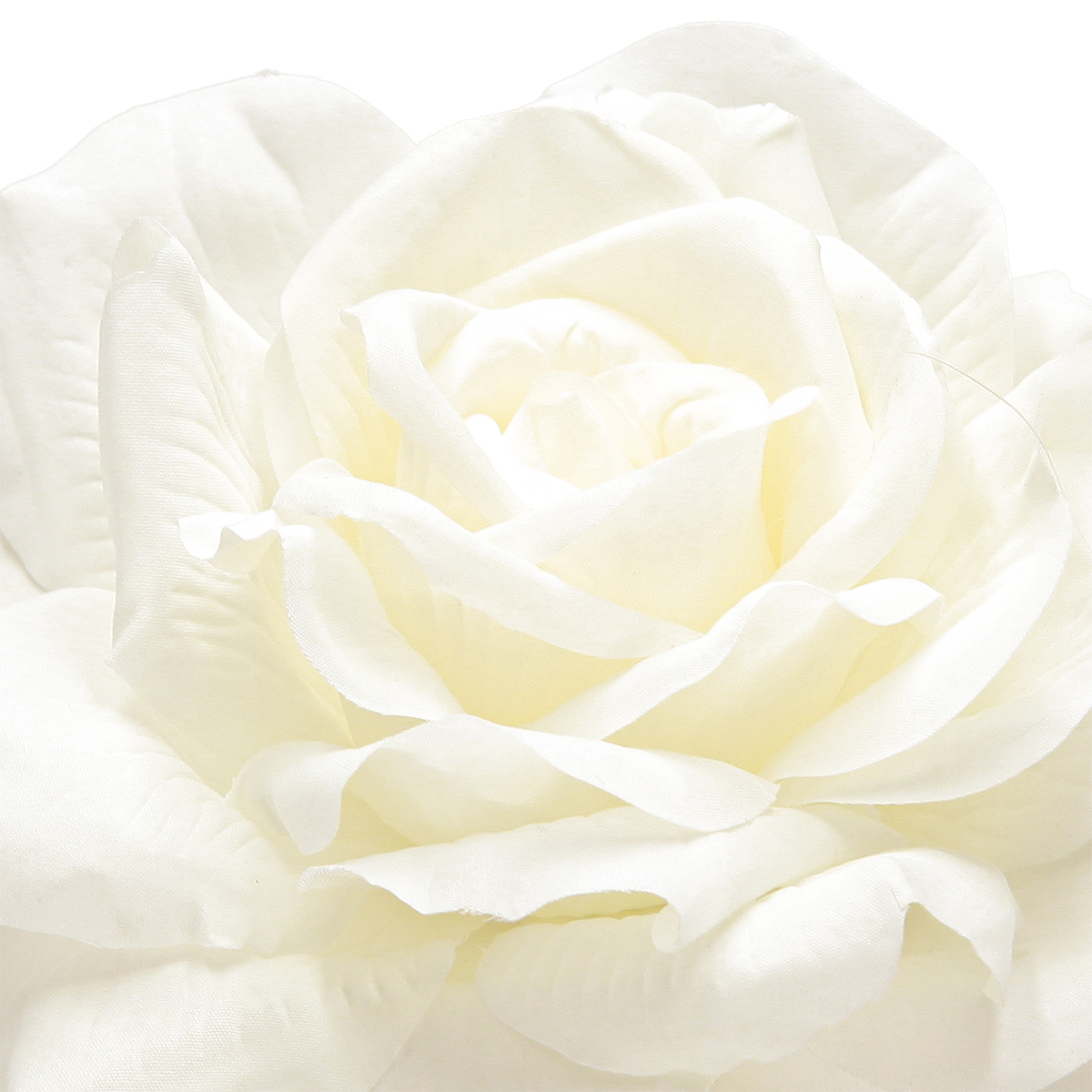 Tyylikäs valkoisen keinoruusun kokonaispituus varren kanssa on noin 72 senttimetriä. Pullevan ruusun pään halkaisija on noin 13 senttimetriä.