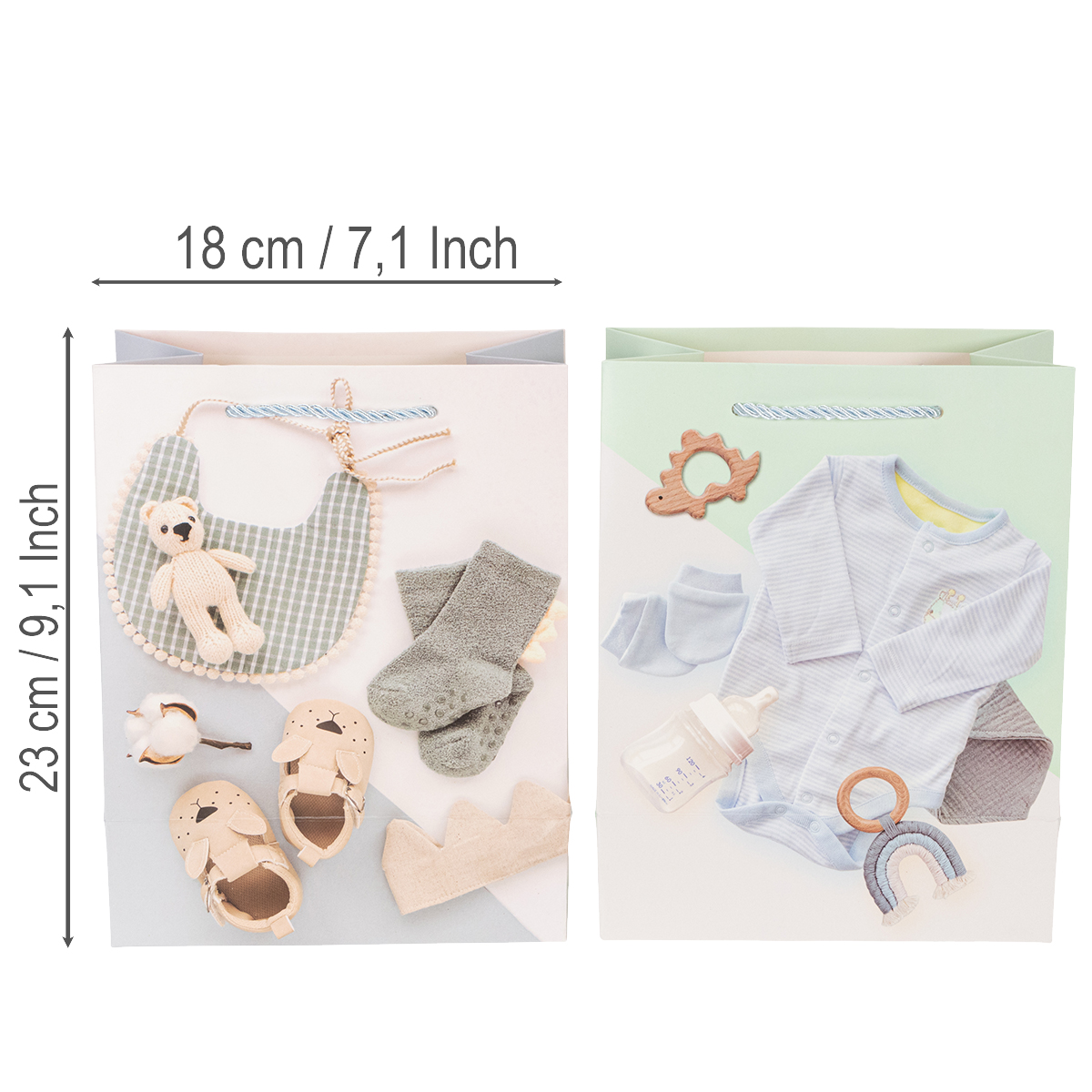 Etsitkö tyylikästä ja käytännöllistä tapaa antaa vauvalahjoja pojalle rakastavasti? Nämä ihastuttavat pojille tarkoitetut lahjakassit, kätevässä kahden kappaleen setissä, esittelevät lahjasi täydellisesti – olipa kyseessä sitten vauvakutsuilla, synnytyksessä tai sydäntä lämmittävässä tervetuliaislahjassa. Kestävästä paperista valmistetut ja noin 23 senttimetrin kokoiset kassit tarjoavat runsaasti tilaa vaatteille, leluille tai muille pienille arvostuksen osoituksille. Ne ovat ihanteellinen valinta tyylikkääseen mutta käytännölliseen lahjapaketointiin.