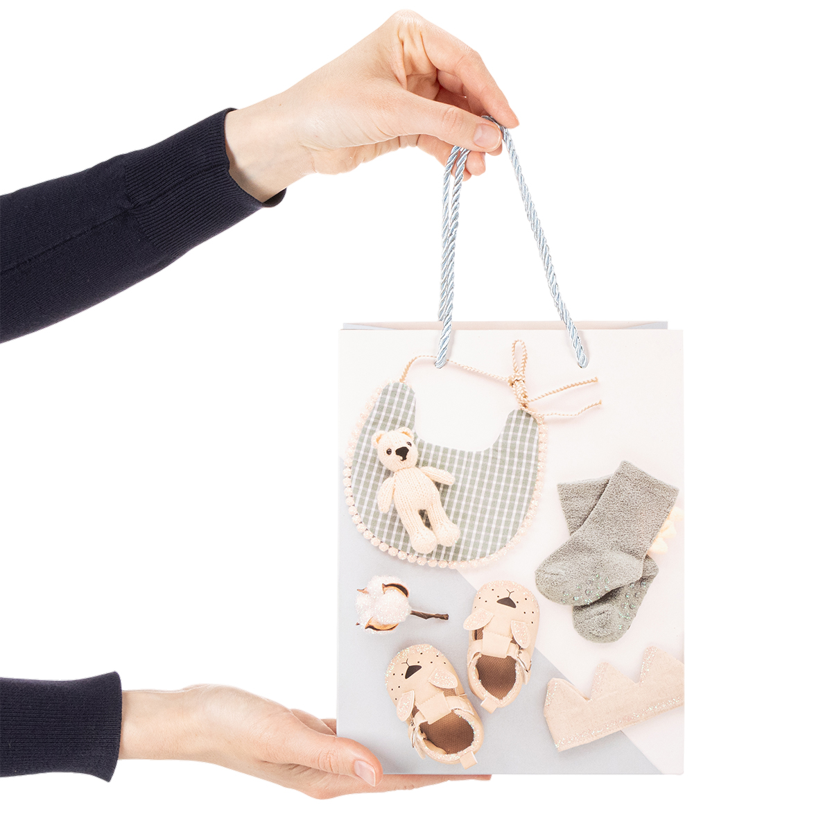 Tämä pojille suunnattu vauvan lahjakassi on täydellinen tasapaino toiminnallisuuden ja viehättävän muotoilun välillä. Lapsiystävällisten kuvioiden ja pehmeiden värien ansiosta se sopii harmonisesti mihin tahansa juhlaan. Jokaisessa kassissa on tukevat kahvat, jotka tekevät lahjojen kuljettamisesta turvallista ja kätevää. Olipa kyseessä sitten suloinen vauvanvaate, hurmaava lelu tai pienet koriste-esineet – kaikella on paikkansa. Kuvittele, kuinka nämä kauniit kassit herättävät katseita lahjapöydällä ja ilahduttavat uusia vanhempia.