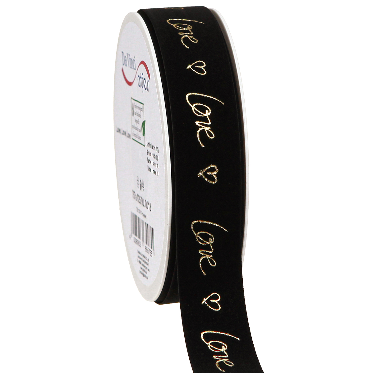Velvet nauha Love surunauha sydämet musta kulta 25mm 18m