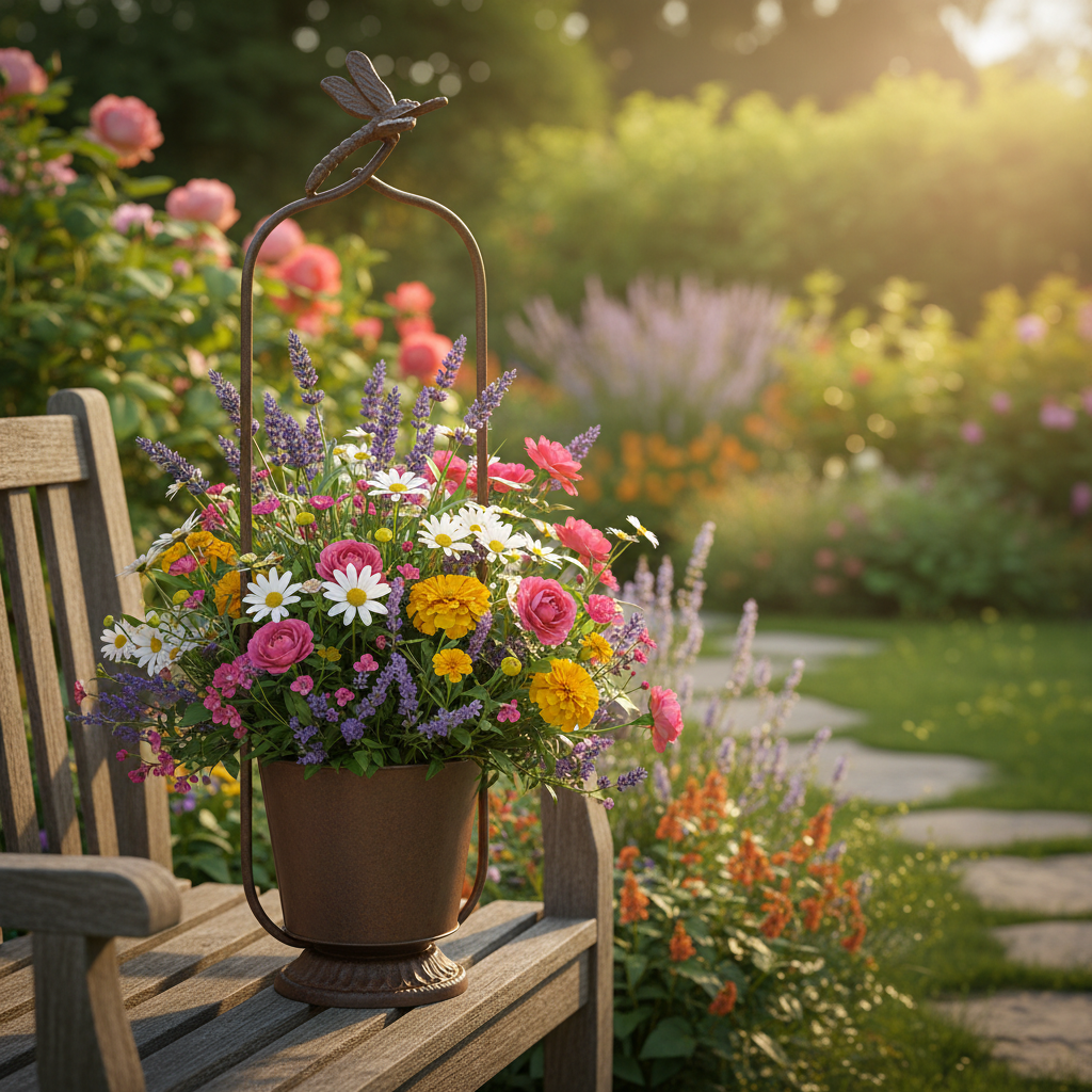 - Täydennä maalaismainen puutarhaasi muilla vintage-koriste-elementeillä, kuten Floristik24:n lyhtyillä tai koristeellisilla kastelukannuilla.