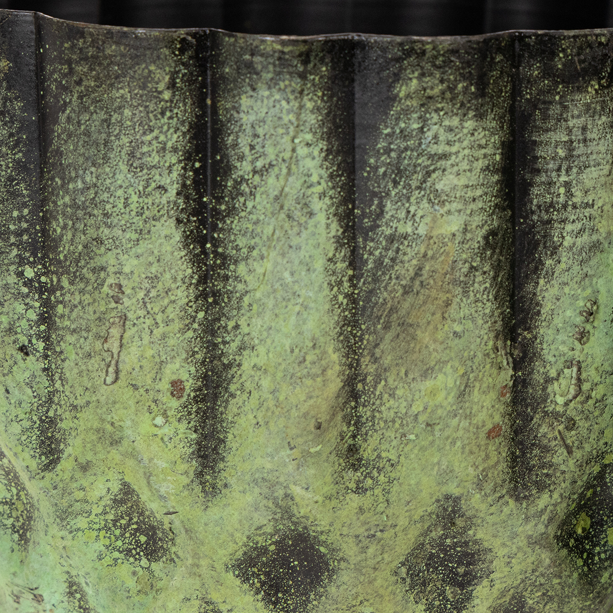 Tämä setti koostuu kahdesta erikokoisesta pyöreästä metallisäiliöstä, jotka sopivat upeasti vintage-luonteisiin sisustustyyleihin. Vihertävä patina näyttää paikoin hapettuneelta metallilta, mutta on tulosta maalin taitavasta levityksestä.