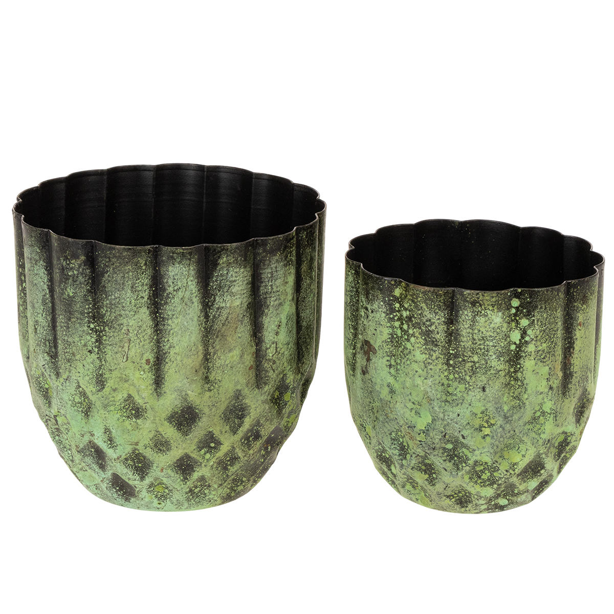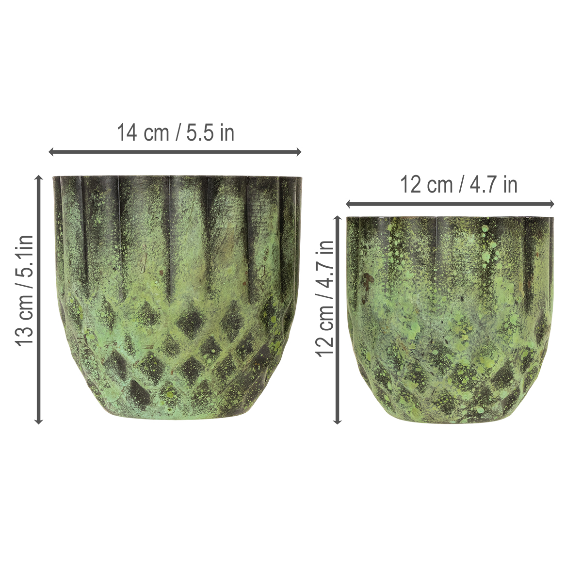 Vintage metallinen kukkaruukku, vihreä, Ø14/12cm, 2 kpl setti