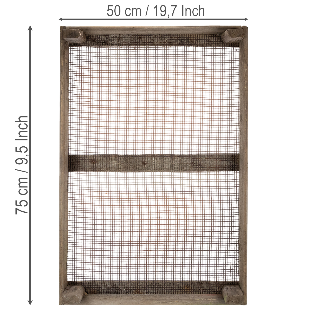 Vintage puinen laatikko metalliverkolla, maalaistyylinen, sipulisiivilä, koristeellinen, 75 × 50 × 14 cm