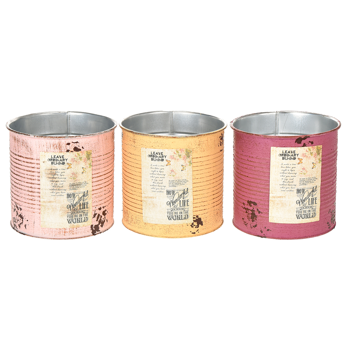 Lisää ripaus nostalgiaa kotiisi tai toimistoosi vintage-tyylisillä säilykekukkaruukuillamme. Nämä koristeelliset ruukut, joita myydään käytännöllisissä kolmen kappaleen seteissä, tekevät vaikutuksen paitsi ainutlaatuisilla retro-yksityiskohdilla koristellulla monimutkaisella maalauksellaan, myös toiminnallisuudellaan. Ruukut on valmistettu tukevasta alumiinista, joka on jätetty sisäpuolelta maalaamattomaksi – ihanteellinen kasvien, ruokailuvälineiden säilytykseen tai ihastuttaviksi pöytäkoristeina. Olipa kyseessä olohuone, ikkunalaudalla tai tyylikkäänä toimistolisävarusteena, nämä pehmeissä pastelliväreissä – lohenpunainen, liila ja aprikoosi – olevat vintage-kukkaruukut sulautuvat harmonisesti mihin tahansa huoneeseen.